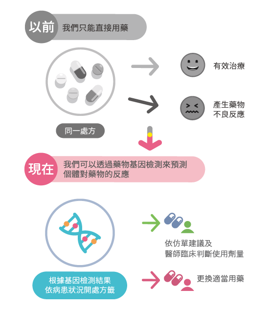 因此藥物基因檢測結果可以給予臨床醫師更多的參考資訊,幫助醫師給予病患最適合的藥物與劑量。
